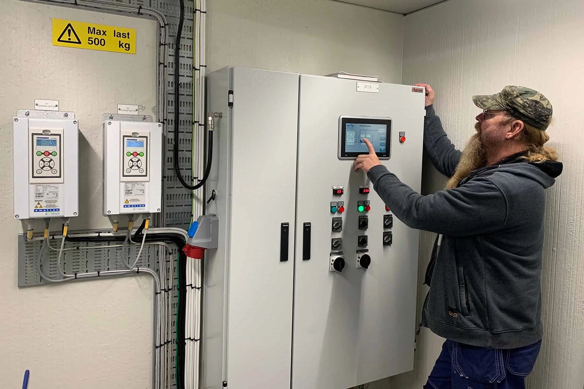 Die Techniker von Emotron konnten Heine Lindqvist und Leif Nilsson von Kalmar Water zu dem einfachen Software-Update anleiten. Dank der intuitiven Programmierfunktionen konnten sie die neue Funktion problemlos selbst installieren und aufrufen.