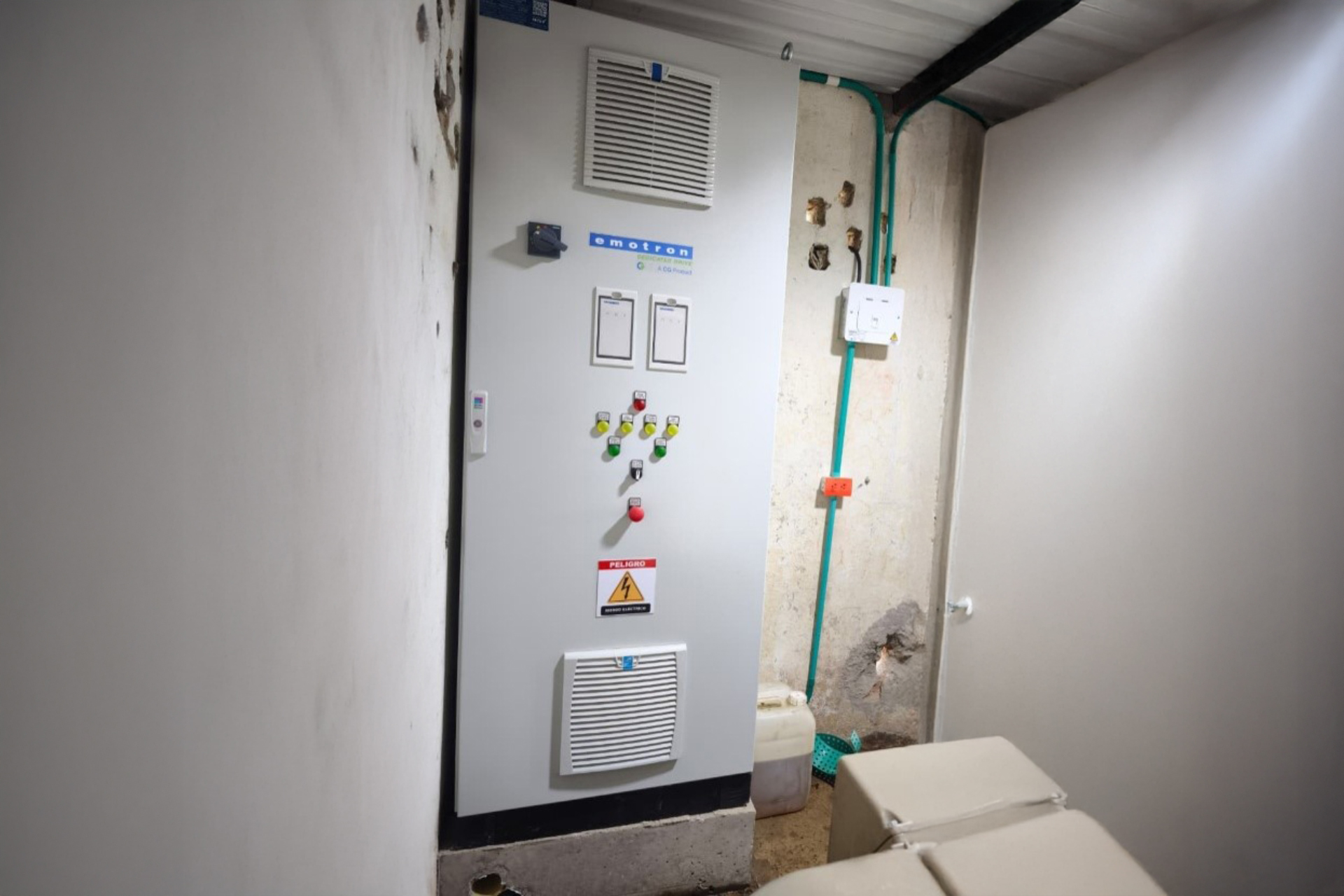 Trotz räumlicher Beschränkungen entwickelte CG Emotron nach einer gründlichen Vor-Ort-Besichtigung und Systemanalyse ein kompaktes Gehäuse und eine komplette schlüsselfertige Lösung – einschließlich Antriebe, Schutzvorrichtungen und Steuerungslogik.